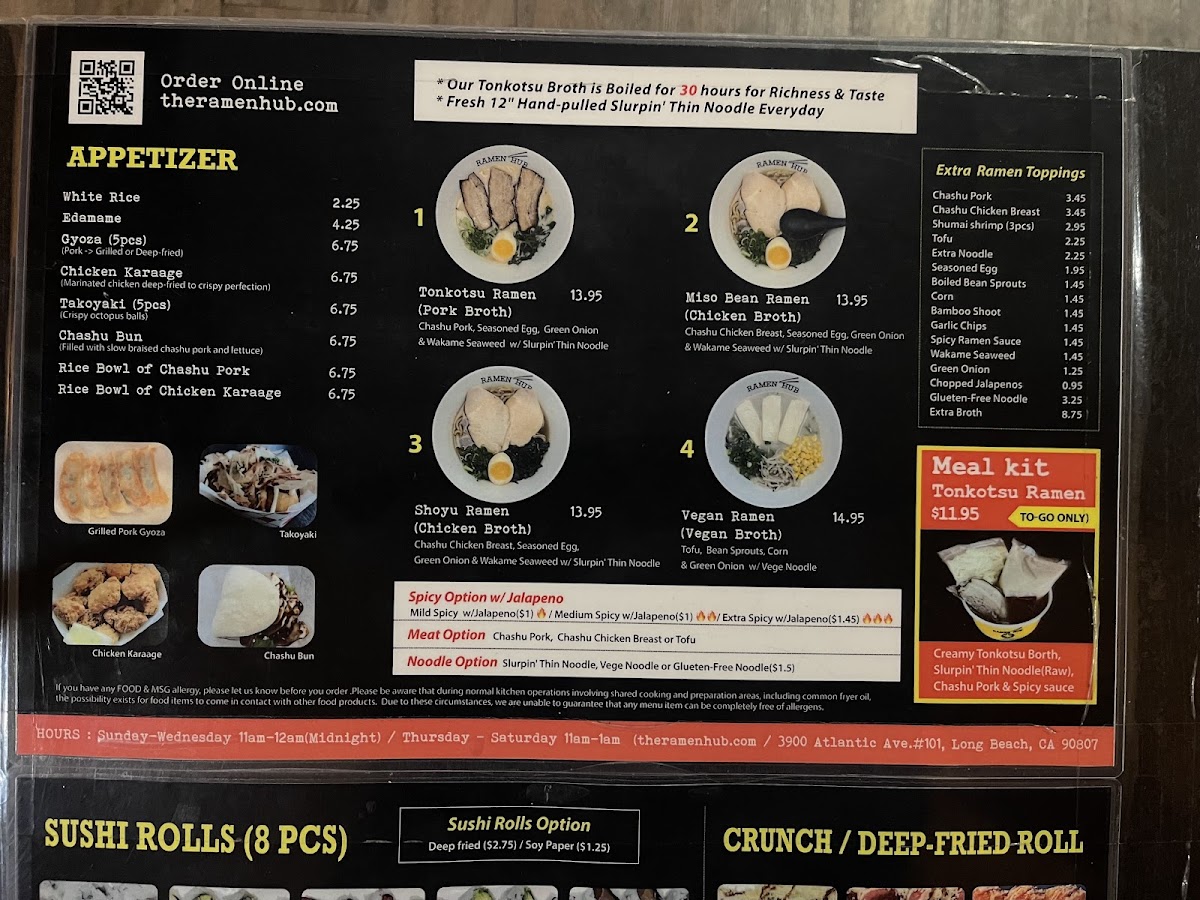 If you find yourself in Long Beach, treat yourself to a visit to Ramen Hub & Sushi—where flavor meets comfort in every bite. With its tantalizing menu, friendly atmosphere, and reasonable prices, it’s a culinary experience that’s not to be missed!